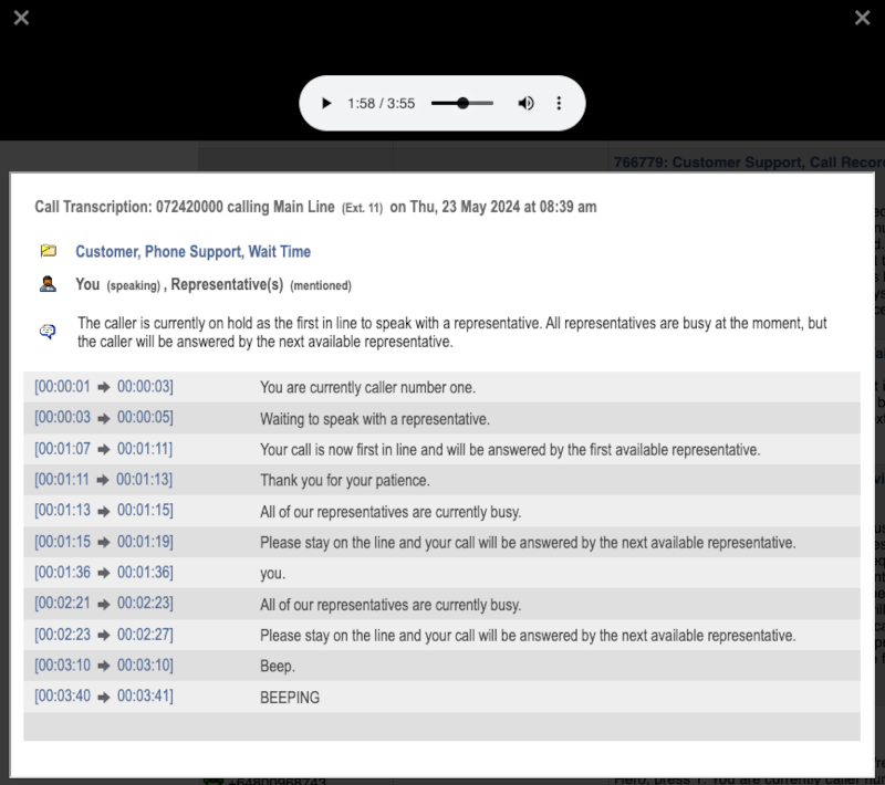 The names of all participants and any other mentioned parties are highlighted and searchable, making it easy to access and review information from previous interactions. Our sentiment analysis also detects profanity or threatening language, providing valuable insights into potential safety concerns.