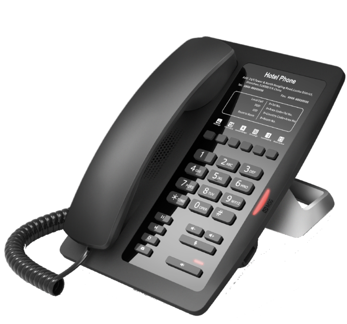 Fanvil H3 (Black) (Wi-Fi Capable) has 6 editable shortcut keys, a USB mobile phone charging port call/message indicator lamp x1, handsfree indicator lamp call hold, call transfer voice message (MOQ required due to custom label) (PSU not included)