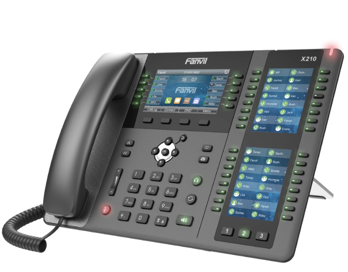The Fanvil X210 IP Phone is an elegant enterprise phone for the executive user. Its features include built-in Bluetooth, HD audio and 6-way audio. These features are designed to make the experience efficient & easy (optional PSU sold separately)