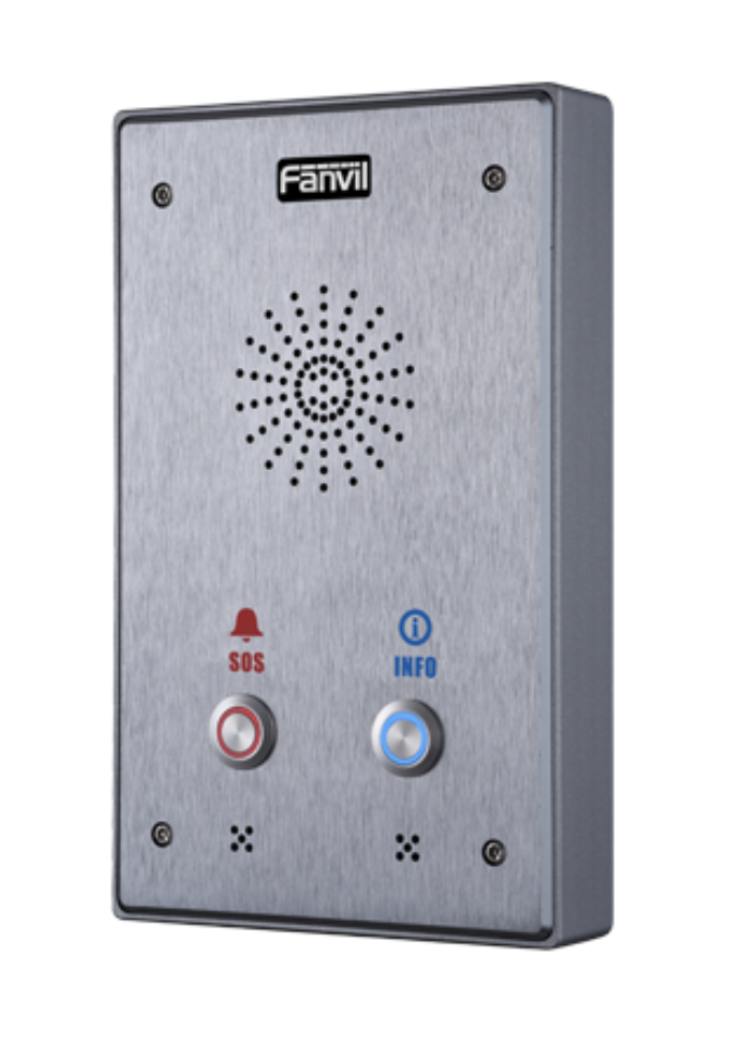 Fanvil i10D (2 button) integrates access control & audio broadcasting functions for ease of communication. And with its wide temperature adaptability (-20°C - 50°C) and being dustproof & waterproof, it can be used in various environments.