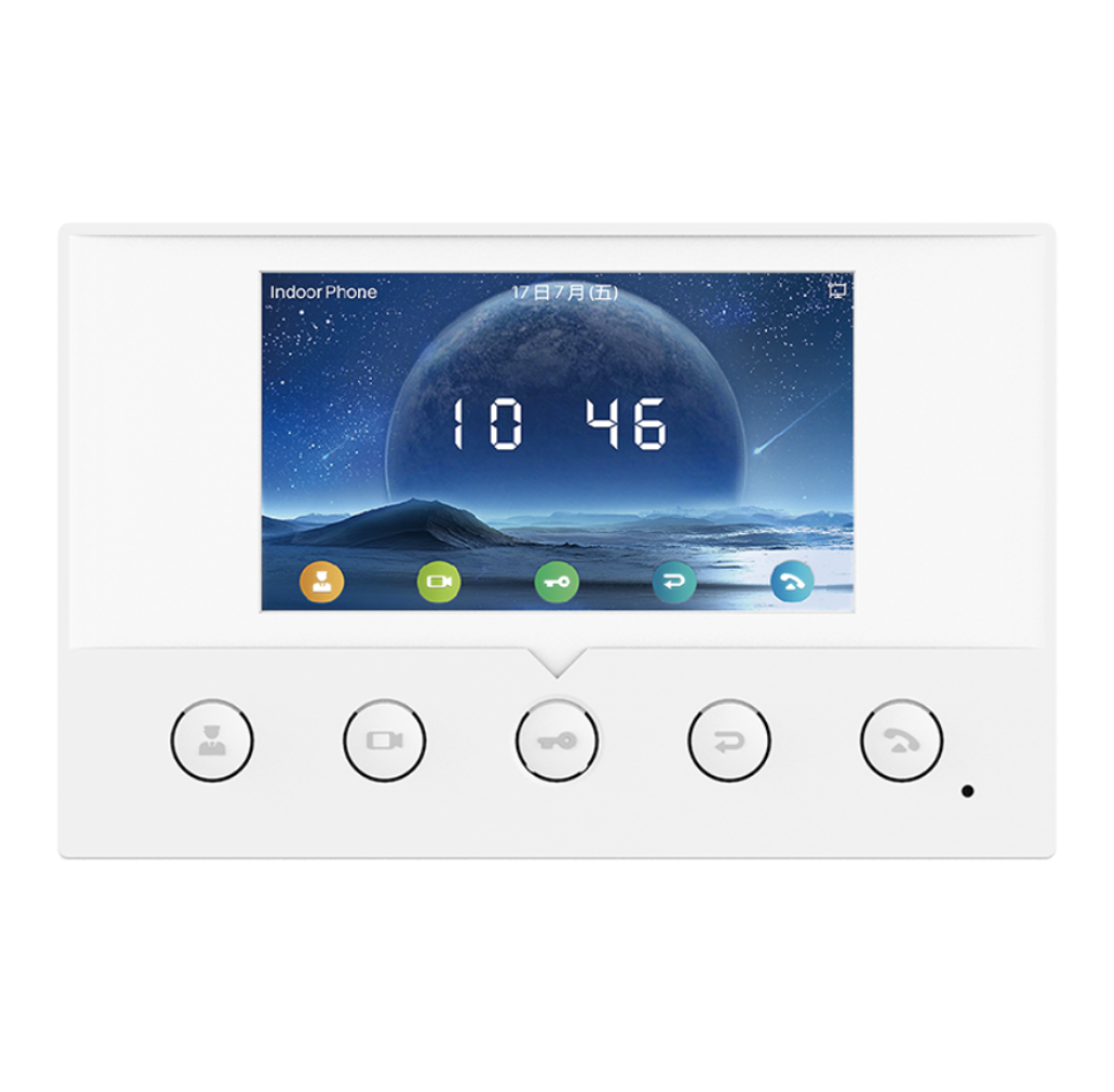 Fanvil i51W is an indoor station with a 4.3” colour screen, HD audio with built-in speaker and acoustic echo canceller. View the authorized camera image over the video door phone. Support online management and upgrade. Compatible with major platforms