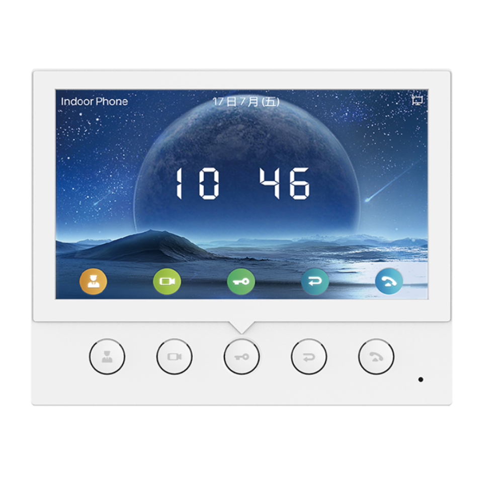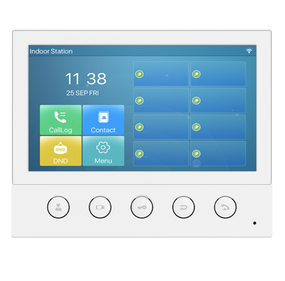 Fanvil i52W is an indoor station has a 7” colour screen, HD audio with a built-in speaker and acoustic echo canceller. View the authorized camera image over the video door phone. Support online management and upgrade. Compatible with major platforms