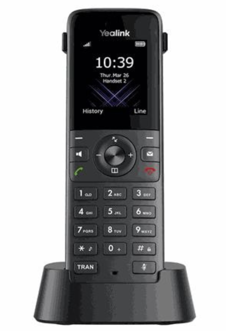 The Yealink W78H is a high-end, stylish, modern wireless handset designed for business use. It has a 2.4'' colour screen and crystal-clear HD audio with noise reduction, packaged in a sleek, durable, and convenient to carry handset.
